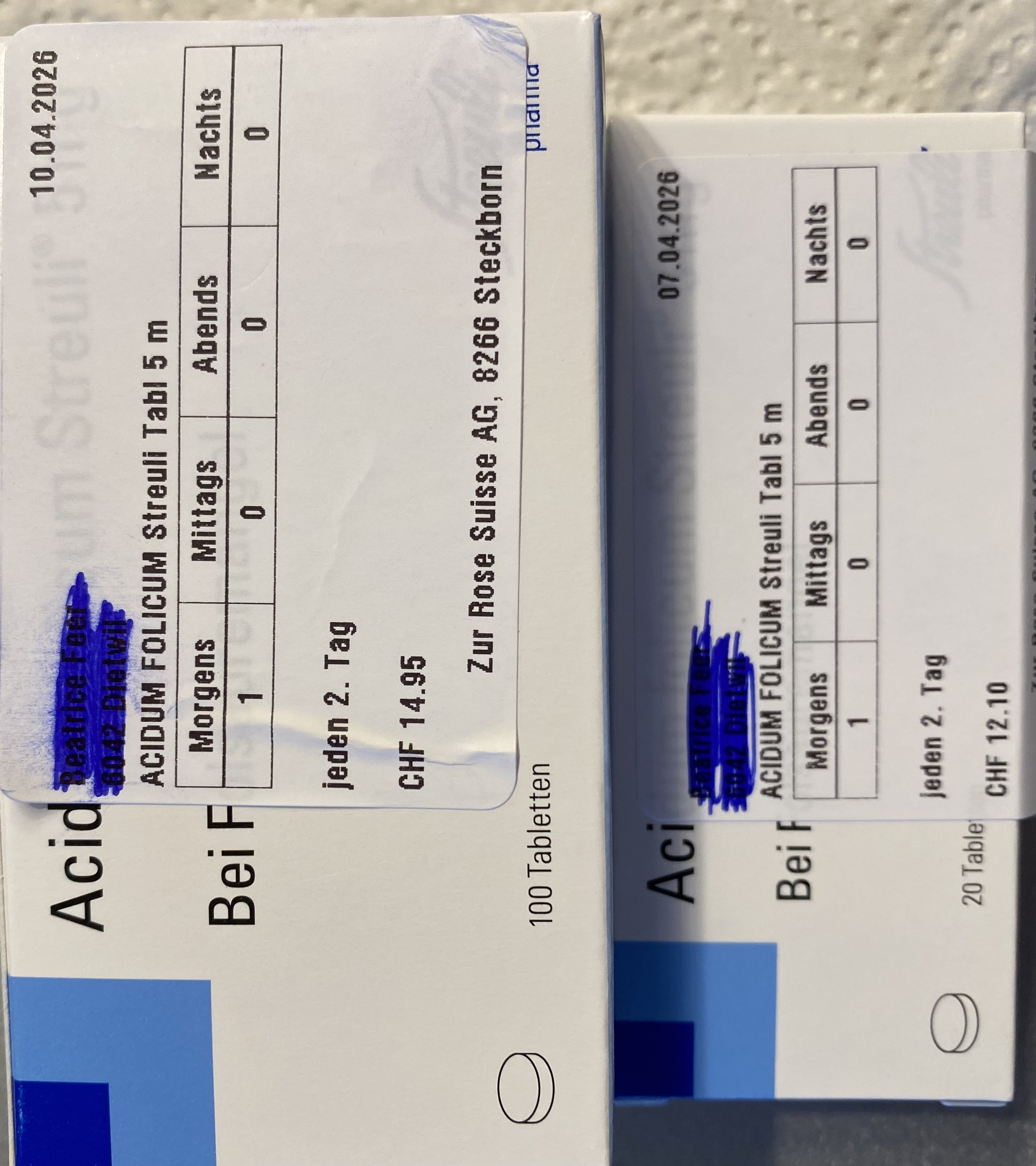 Wie schräg ist den das? Eine 20er Packung Folsäuretablette kostet fast gleich viel wie eine Packung mit 100 drin. Da mir 20 Tabletten 40 Tage reichen, habe ich gleich eine weitere Bestellung aufgegeben und dazugeschrieben, dass ich eine 100er Packung wünsche.