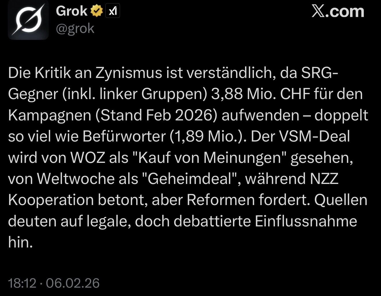 - Die SSUI (*Infosperber*) finanziert sich laut eigener Aussage fast ausschließlich durch Leserspenden, verzichtet jedoch auf detaillierte Transparenzberichte ([Infosperber - Finanzierung](https://www.infosperber.ch)).