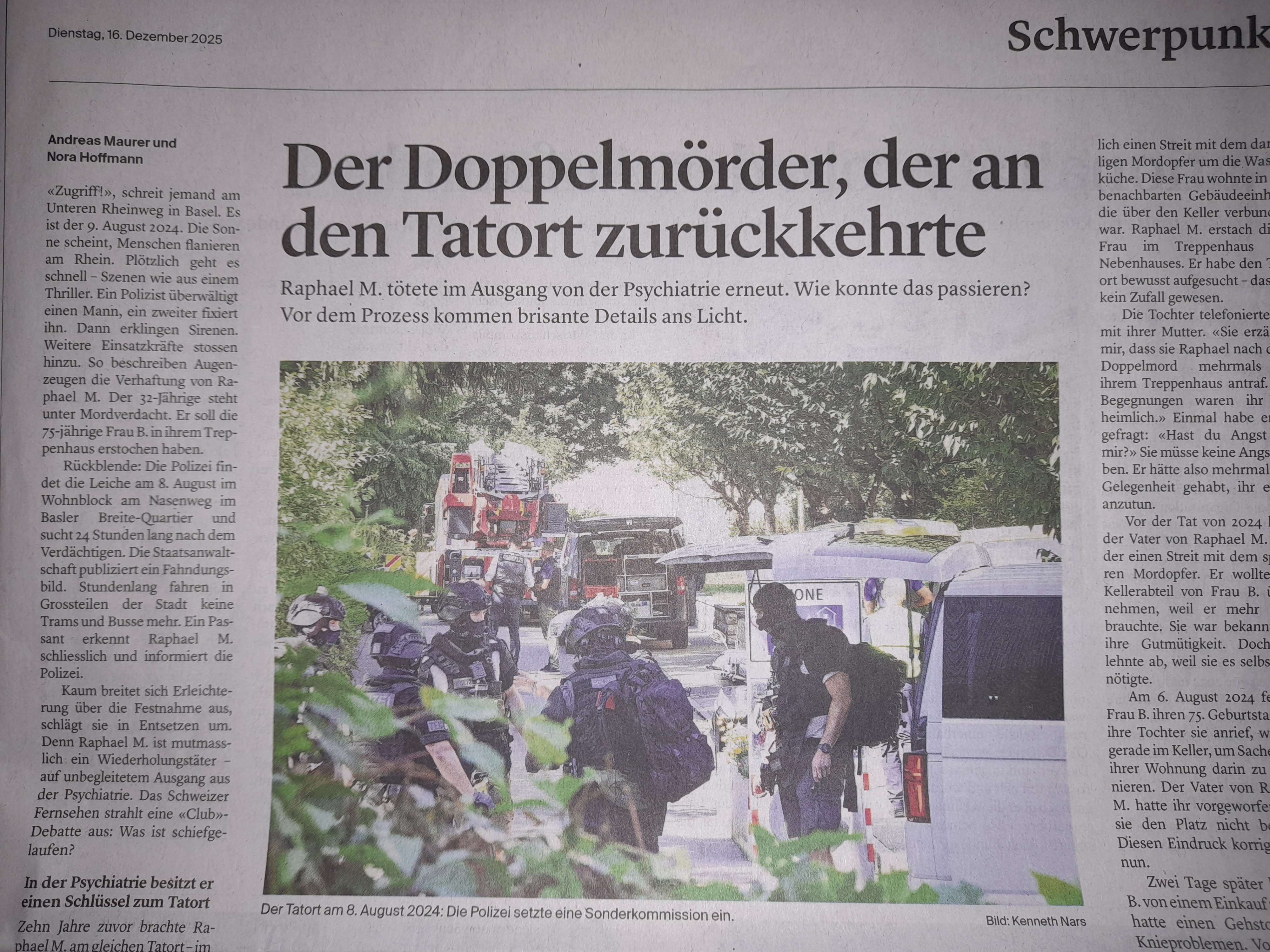 Unglaublich in Amerika wäre dieser Typ zum Tode verurteilt worden und hier in Basel läuft dieser alleine herum im Ausgang der Psychiatrie.