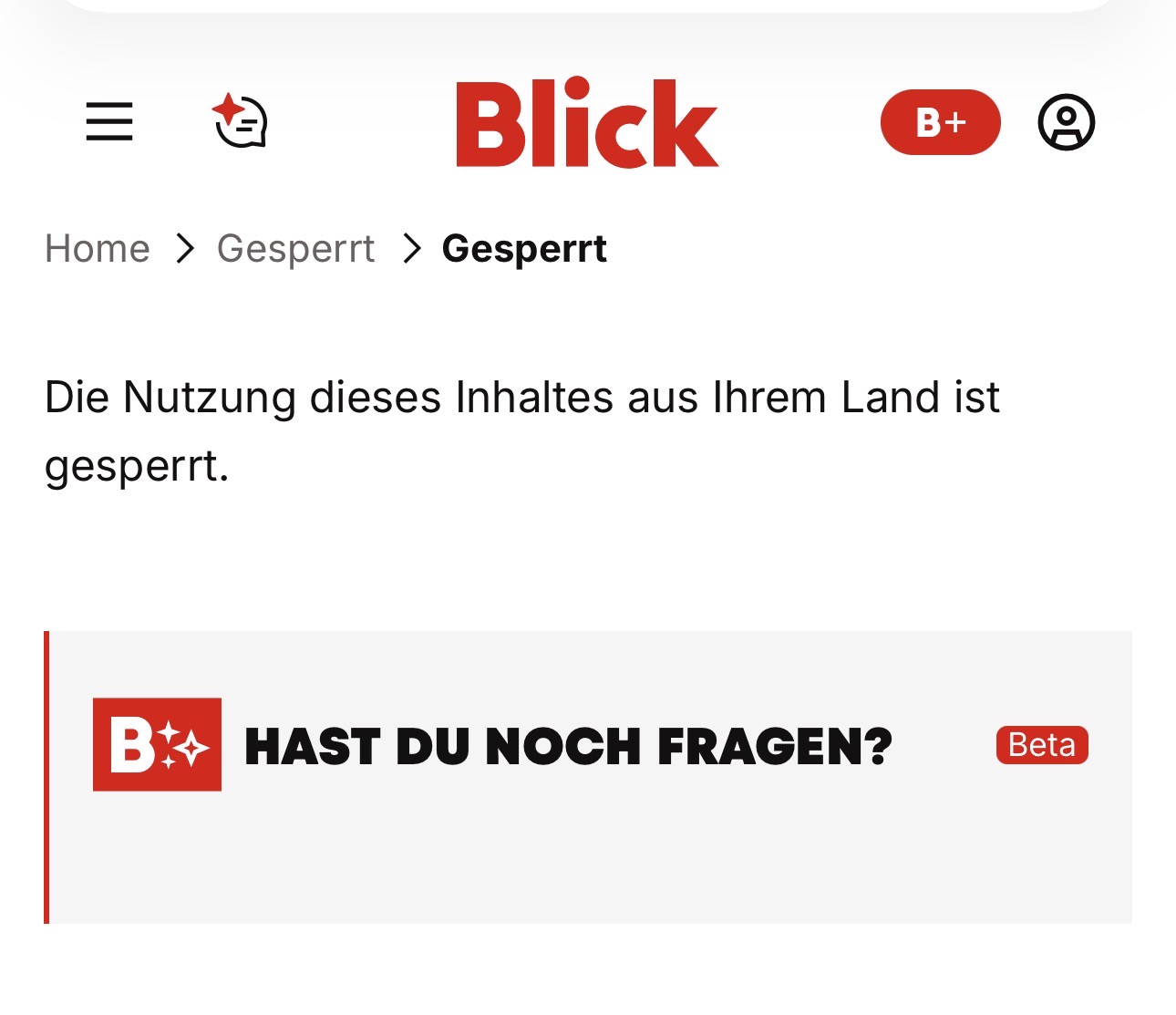 Interessant ist aber, dass die Sperre auf Deutsch auf der BLICK-Website kommuniziert wird.