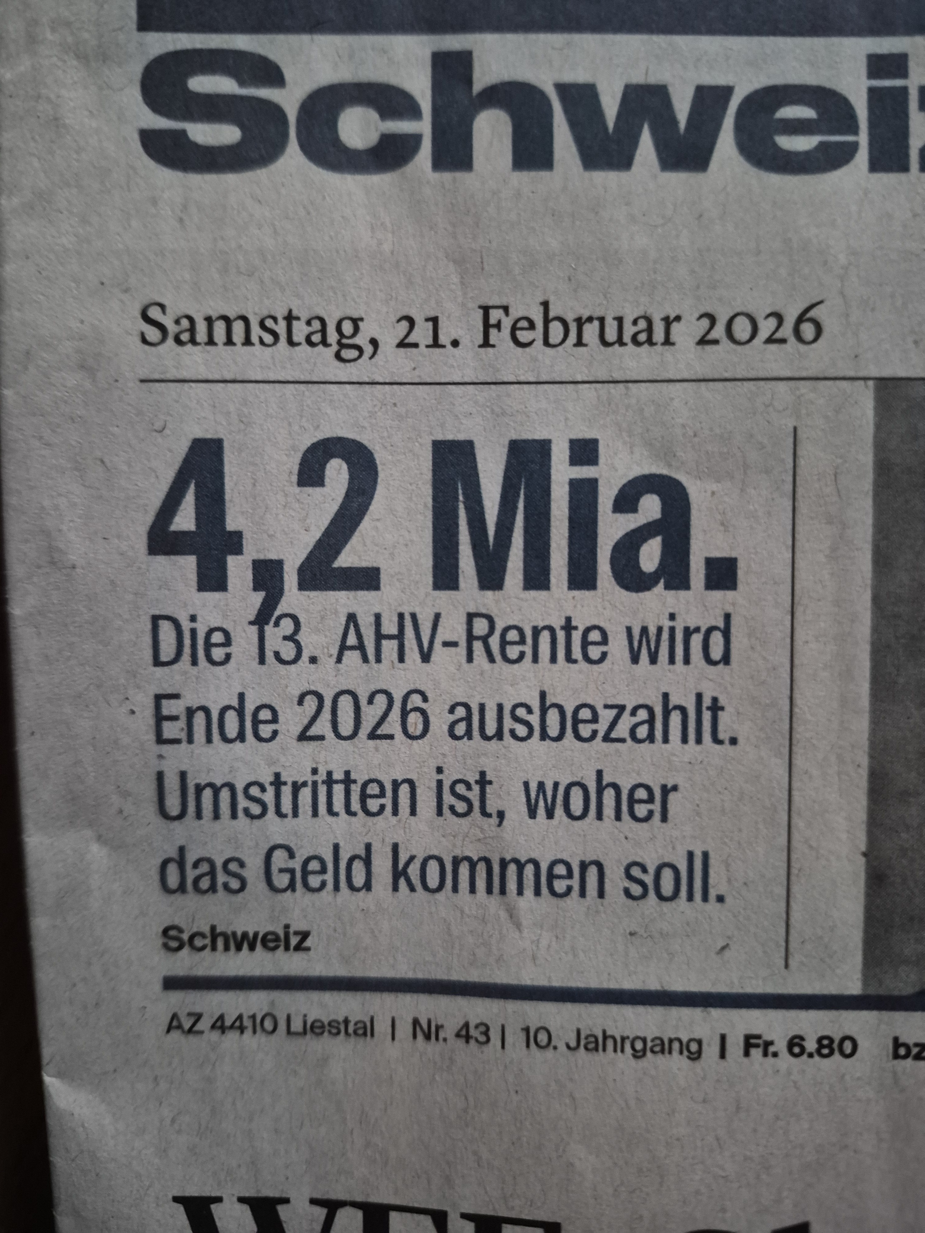 Ich kann dieses Affentheater nicht verstehen, unsere Verbrecherregierung soll endlich mal aufhören in Kriegstreibende Länder sinnlos Milliarden zu verschwenden, dann könnte man sogar noch eine 14te AHV ausbezahlen.